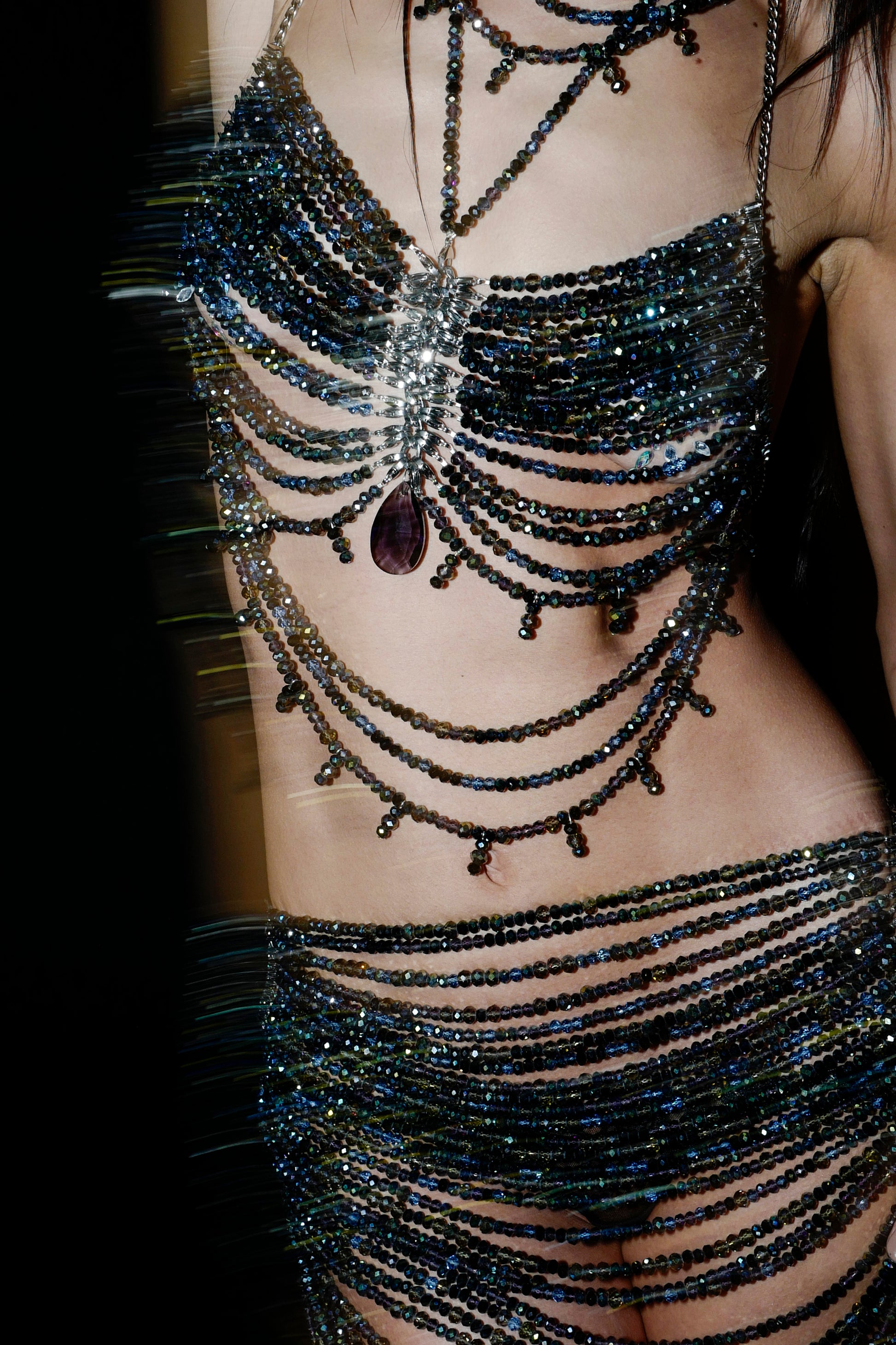 One pair of crystal nipple covers are included with the purchase of this beaded top.